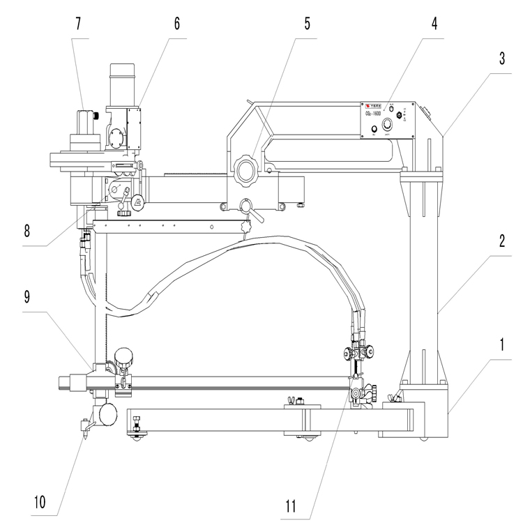 11.割炬:可在此微調割炬與鋼板的高度以及切割坡口角度。