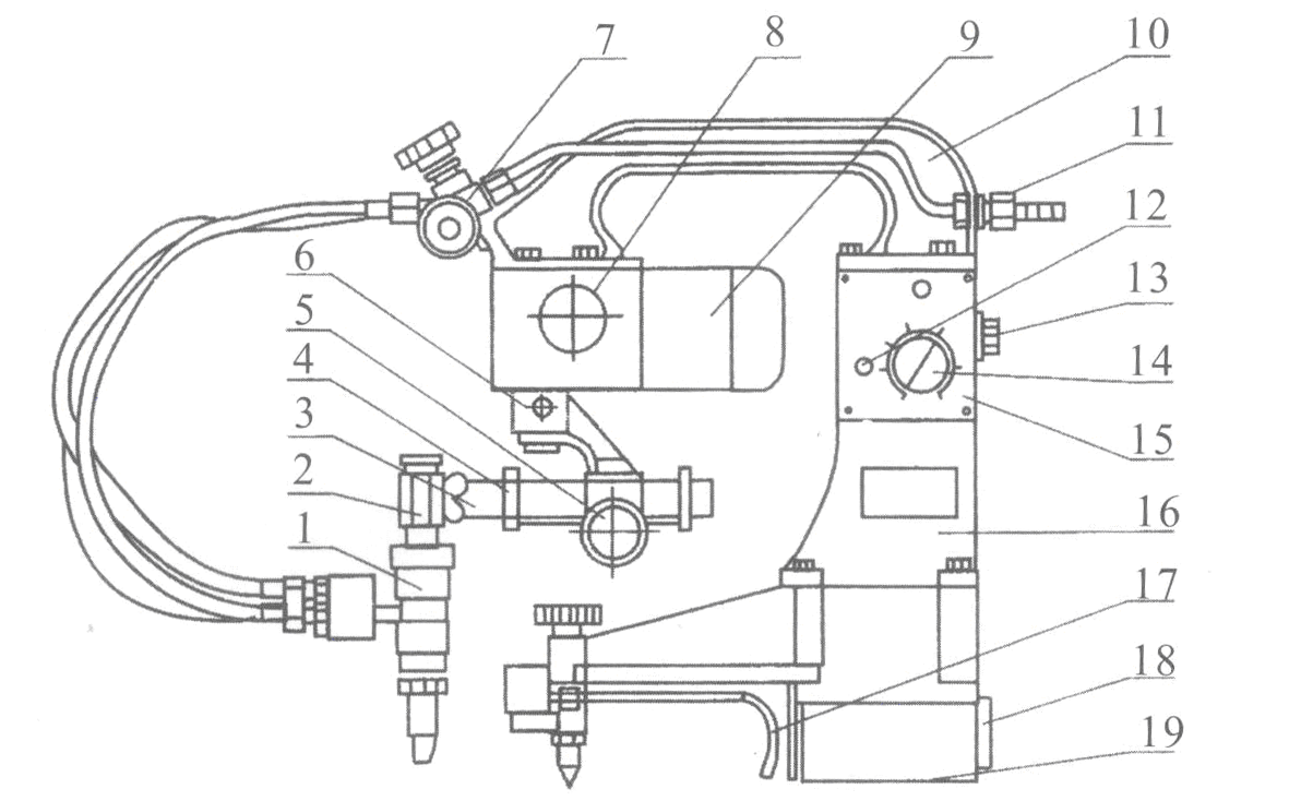 2.升降調(diào)節(jié)套 8.氧、乙炔接頭 14.磁鐵