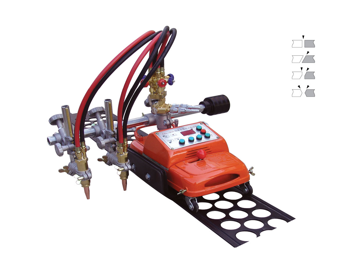 標準型CG2-600割圓機,其標配有一把割炬。“CG2-600”型半自動割圓機采用鋁合金鑄造而成,輕巧便攜。機械兩檔變速,調速系統采用可控硅觸角調速,運行速度平穩。機身底腳裝有滾輪,移動方便。本裝置通過其底座上三個支撐點放置在被切割鋼板上。電機通過減速箱變速,帶動中心軸作旋轉運動進行切割,割圓半徑根據需要可調節,也可在鋼板豎直和角度擺放情況下進行切割。使用該割圓機可提高工效、保證切割質量有效減輕工人的勞動強度。本機采用兩檔變速,調速系統采用可控硅觸角調速,調節精確。割炬總路設有總閥,切割同厚度的鋼板只需調整火焰一次,以后無需再調整。本裝置配有氣體旋轉分配器,膠管不纏繞。本裝置,有效減少了勞動時間,降低了工人的勞動強度,一定程度地提高了工作效率。