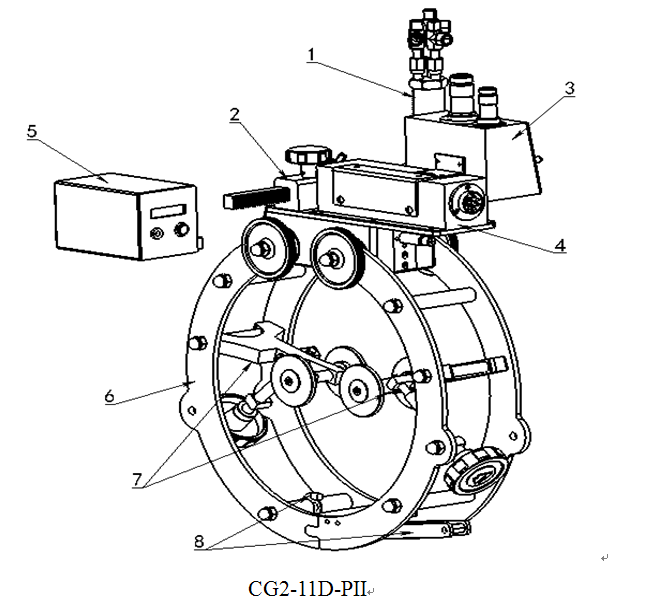1. 割炬 2.橫移座 3.電器箱總成 4.電機(jī)總成 5.直流電池