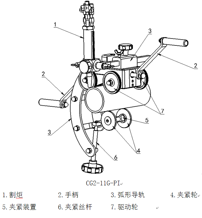 “CG2-11G/D-P”系列手搖式管道切割機是基于現(xiàn)在安裝繁瑣而開發(fā)的一款快速安裝定位的機型。該機器具有四只平行的行走輪,采用杠桿原理,通過連接彎鉤繞連接座運動來起到快速安裝的作用。適合于無縫鋼管的快速安裝切割。該機器結構獨特,操作簡便,易于維修,移動方便,切割輔助時間少。具有極高的可靠性。特別適用于野外作業(yè)。 該機器裝有兩個夾緊裝置,可沿鎖緊輪固定軸前后運動來調(diào)節(jié)鋼管的管徑。同一型號的鋼管在第一次安裝調(diào)試好后,后面同一規(guī)格的鋼管就可以通過鎖緊裝置進行快帶定位安裝,減少的批量生產(chǎn)時帶來的安裝的麻煩,提高生產(chǎn)效率。
