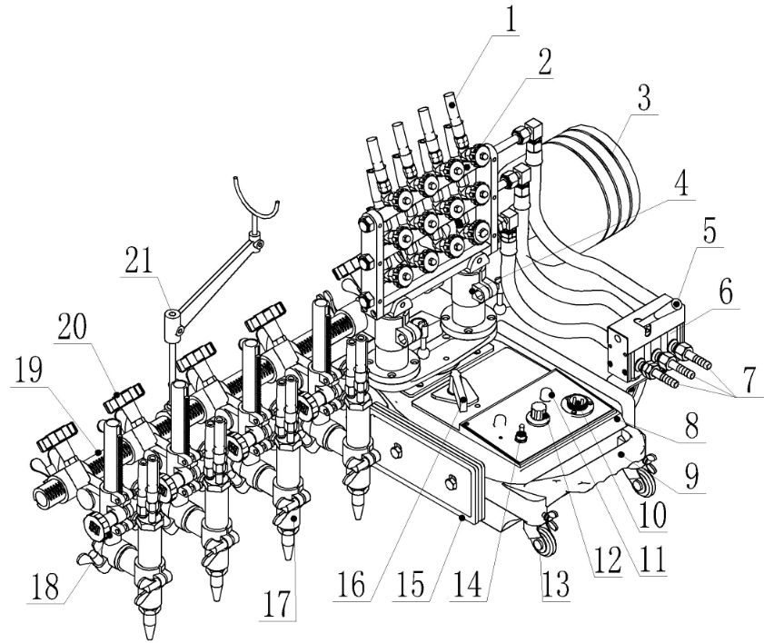 l GCD5-100型多頭直條切割機有5組有效割炬。
