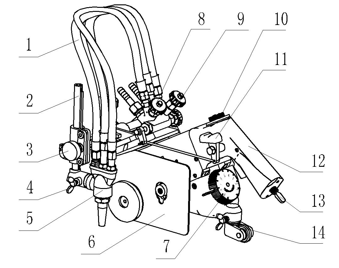 3.割炬升降手輪:旋轉手輪,可調節割炬與鋼板之間的垂直距離。