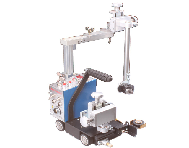 HK-5B-II型小車是適用于間斷或者連續的水平角焊結構的雙面焊接自動裝置。焊接/非焊接區間的實際距離顯示屏上,用扳動開關的上下調節,設定焊接與非焊接的距離,焊接與非焊接的距離是用電機與控制器控制,尺寸的精密度高,運行速度均勻,可實現精密焊接。非焊接狀態下的小車行走速度為最大值(1900mm./min)。手柄為磁控式,移動此手柄可以部分的減少磁力,便于清理鐵質垃圾和移動小車。設有收弧裝置,收弧時間調節范圍在0-7 S。可以向左右兩方向焊接;小車兩端安裝有感應停止開關,焊接結束后小車可以自動停止,便于一個工人同時操縱多臺設備。安裝有永久磁鐵,避免小車脫離焊接線的現象。焊槍支架長度和高度可以根據工件形狀進行調節,使用方便體積小、重量輕,移動和安裝都很方便。