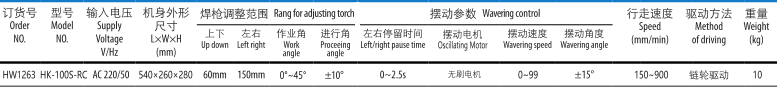 該機具有擺動功能,有不同規(guī)格的焊道方式可供選擇,以獲得最佳的焊接效果。擺動速度,擺動角度,中心偏移位置和左右停留時間均可方便的調(diào)整,數(shù)碼管顯示各種調(diào)整數(shù)據(jù)。較寬的軌道讓整臺機器的重心更穩(wěn)定,軌道下裝有帶開關(guān)的永磁磁鐵,安裝移動更方便。驅(qū)動部分安裝了手動離合裝置,方便機器在軌道上快速定位,導(dǎo)輪也配有離合裝置,可以很方便的進行小車與導(dǎo)軌之間安裝與拆卸。可以進行垂直角焊和水平角焊,適用于加強件等的交叉部位的焊接。焊接不銹鋼或鋁材,可選用真空吸盤導(dǎo)軌。無線遙控操作更加省心省力,注:標(biāo)配二根長度為2米的柔性導(dǎo)軌。