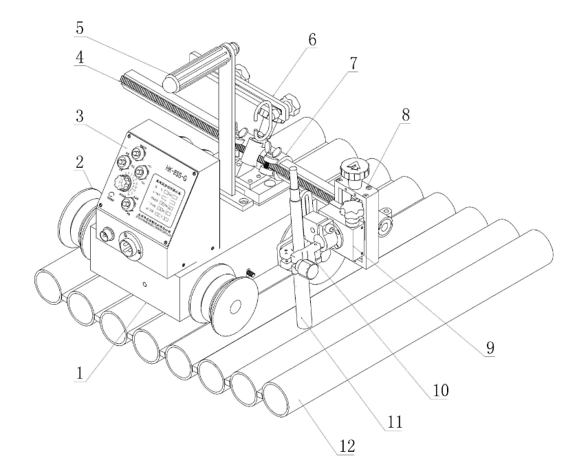 HK-8SS-G由小車本體、X-Y滑塊、導(dǎo)向輪、焊槍把手、焊槍擺動(dòng)器、控制箱等部件組成。